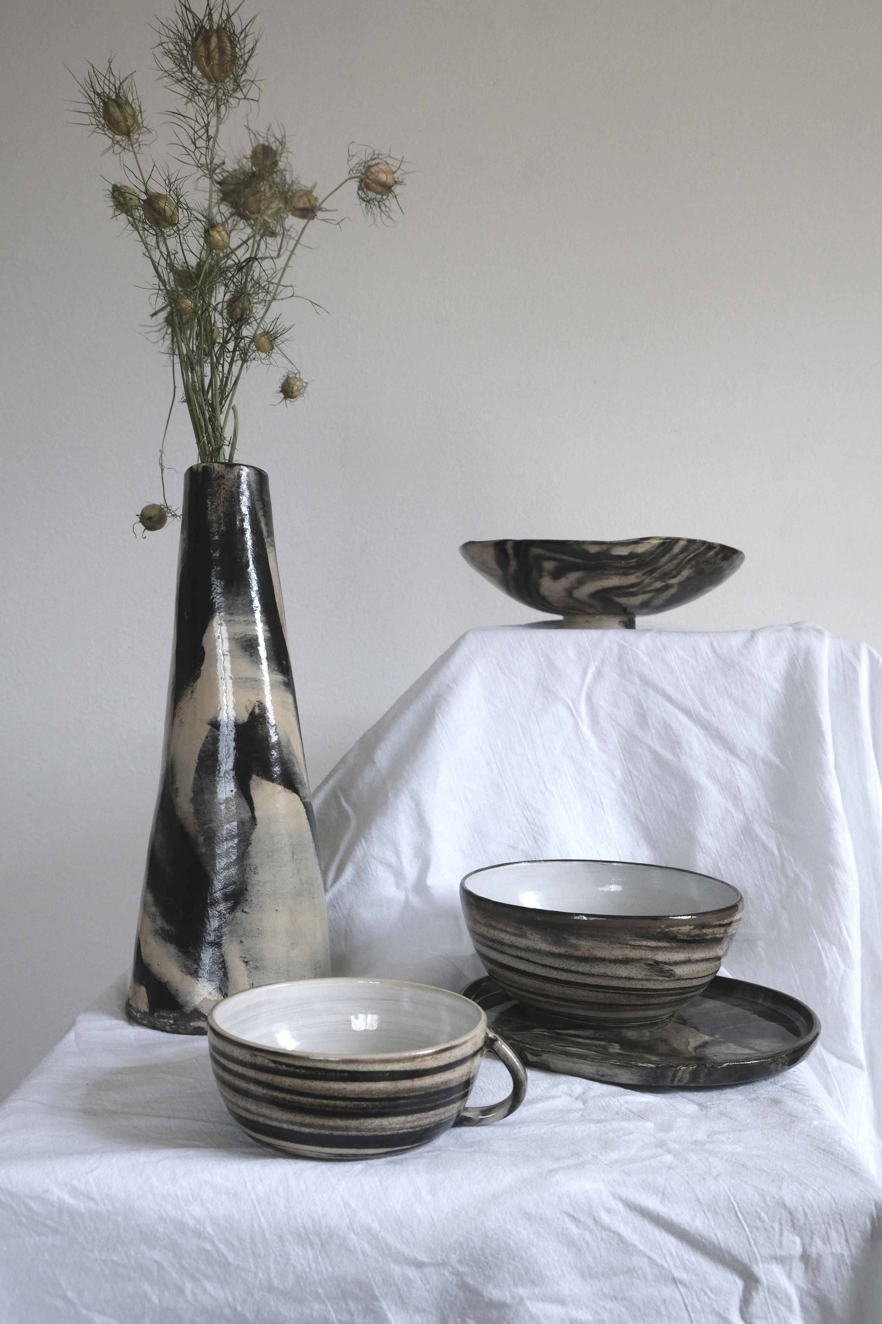 All ceramic pieces are made in small batches. Not a single one looks like the other. If you are interested in a piece or a series – get in touch or visit me in my studio.